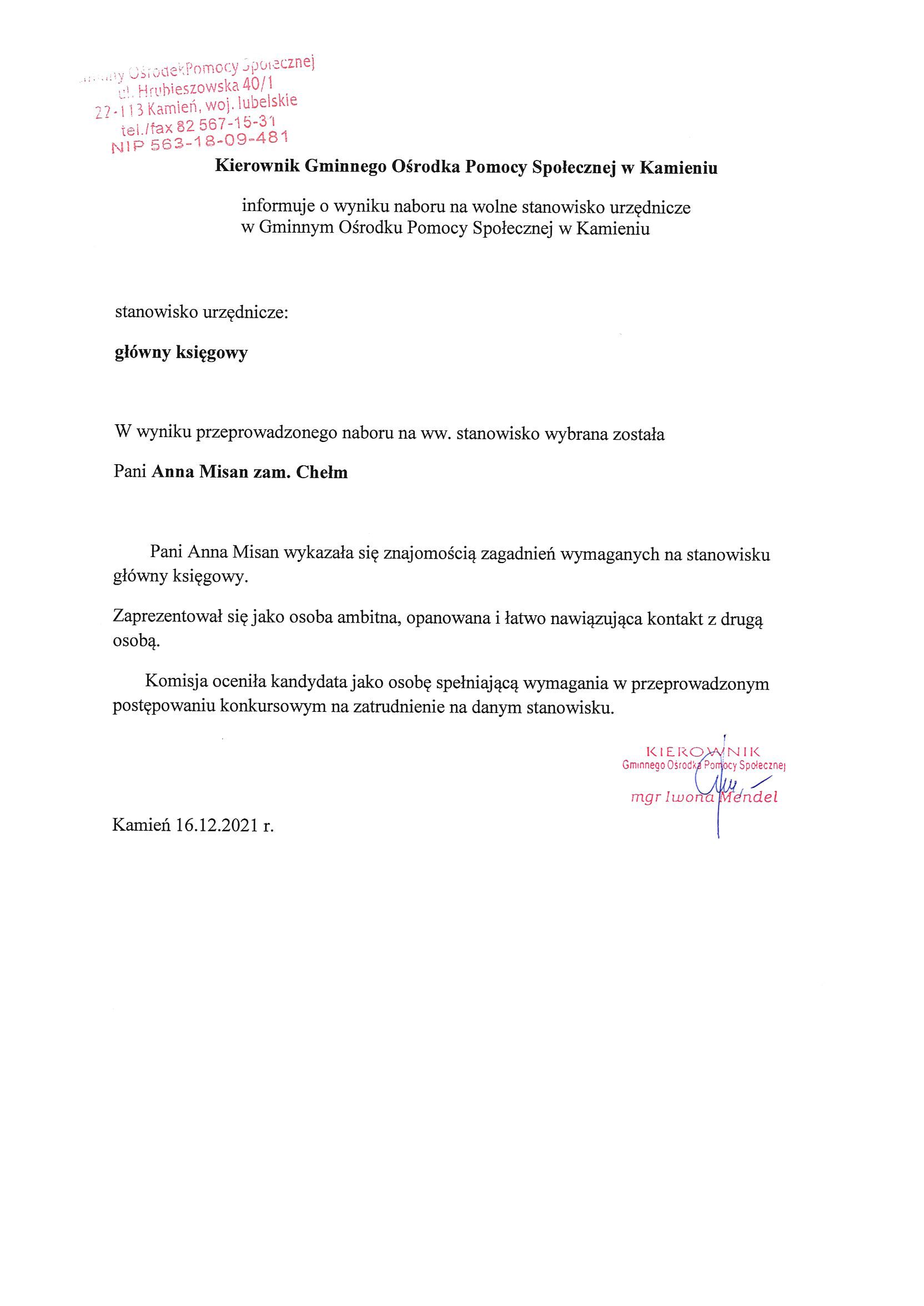 Gminny Ośrodek Pomocy Społecznej w Kamieniu Hrubieszowska 40/1 22-113 Kamień